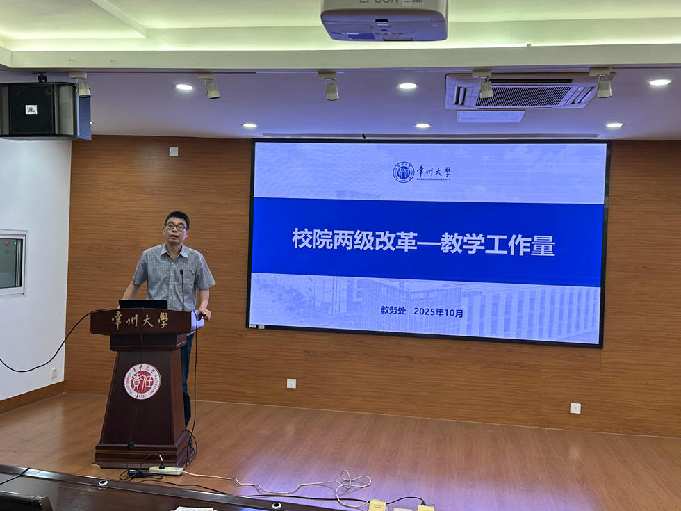 莫琦围绕教学工作量的历史沿革与改革背景、存在问题,校院两级教学改革的重点,学院教学当量的计算与使用,学院教学工作量相关工作安排等四个方面展开。他强调,各学院要统一思想、凝聚共识,使全体教师认同改革的必要性,准确理解文件政策;要根据实际,出台学院考核与分配方案、学院教师教学工作量计算办法等相关文件,用于年度考核、二次分配、职称评审、聘岗等工作;要聚焦高质量成果谋发展,尤其是关乎学校事业发展、高水平大学建设的相关成果。张洪文就学院教学当量核算办法就行解读,并对学院教学当量核对注意事项进行了细致说明。