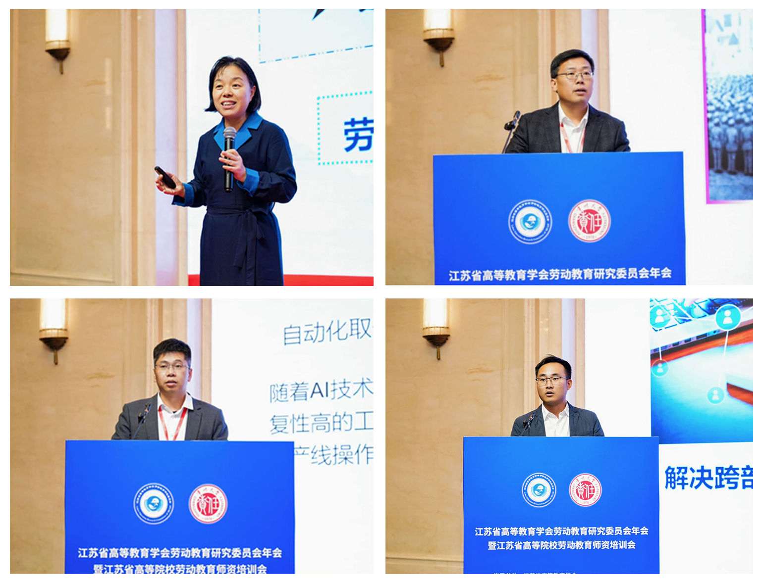第二阶段报告由盐城工学院教务处副处长周天池主持。淮阴师范学院副校长丁红燕作题为《科技浪潮下劳动教育的变迁与思考》、南京理工大学钱学森学院党委副书记王涛作题为《南京理工大学钱学森学院“益心益意”劳动教育实践》、常州大学教务处副处长纪国剑作题为《产创引领 数智赋能 常州大学劳动育人实践与探索》、南京先极科技有限公司总监王春杰作题为《高校劳动教育数智化管理的探索与实践》的主题报告。