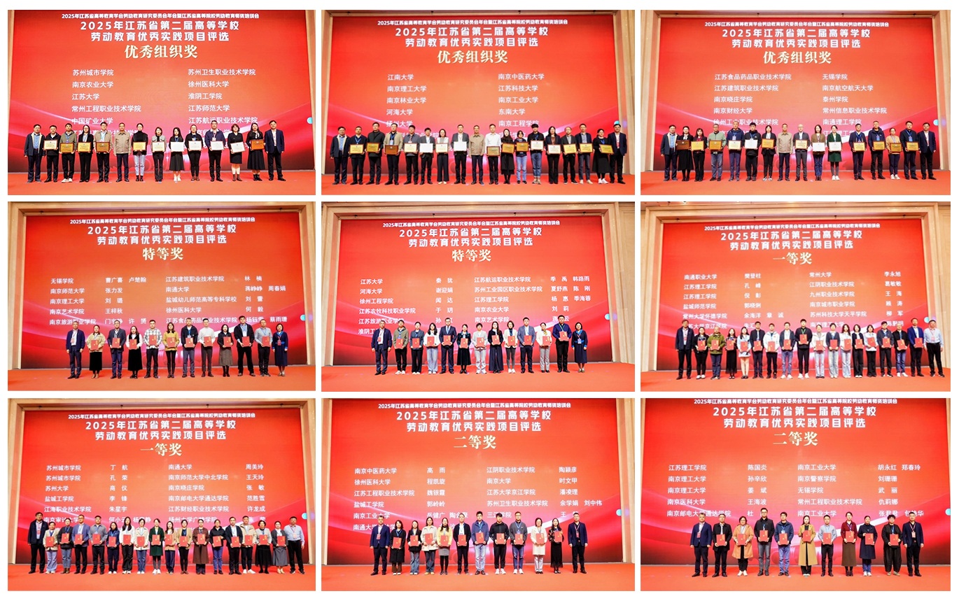 会议对江苏省第二届高等学校劳动教育优秀实践项目优秀组织奖、特等奖、一等奖、二等奖进行表彰。