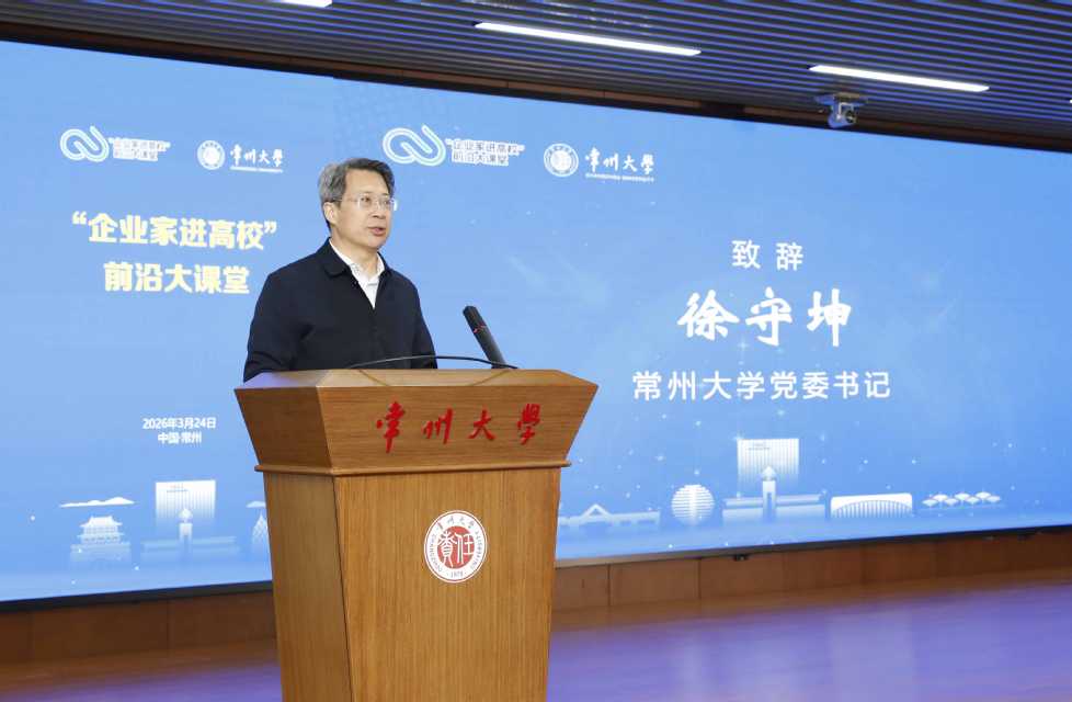 徐守坤表示,“企业家进高校”前沿大课堂活动是江苏省立足江苏产业实际和高校人才培养需求,深化产教协同育人,助力江苏高质量发展的创新举措。作为江苏高水平大学建设高校,常州大学扎根江苏48年,始终把服务地方发展作为办学的落脚点,主动融入国家创新驱动发展战略。期待与全省高校携手同行,建立更加常态化、机制化的校企交流通道,紧密对接产业前沿趋势,培育更贴近产业、更扎根实践、更具竞争力的产业高素质人才,共同推动教育链、人才链与产业链、创新链的深度融合。