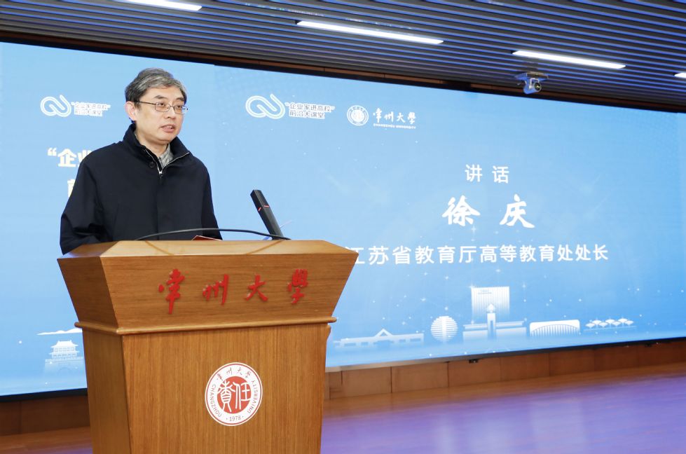 徐庆指出,江苏省教育厅将持续探索深化产教融合,创新多元化、深层次的校企合作模式,计划推出不少于100堂前沿课程,通过推动企业家常态化走进校园分享产业前沿实践、参与专业课程资源建设,与高校教师联合开展技术攻关、成果转化等,推动形成“人才共育、成果共享”的良性循环。常州大学在推进产教融合、校企协同方面成效显著,希望学校以此为契机,加快推动产业前沿技术资源向高校育人资源的有效转化,在校企双向赋能、人才共育方面取得更加丰硕的成果。
