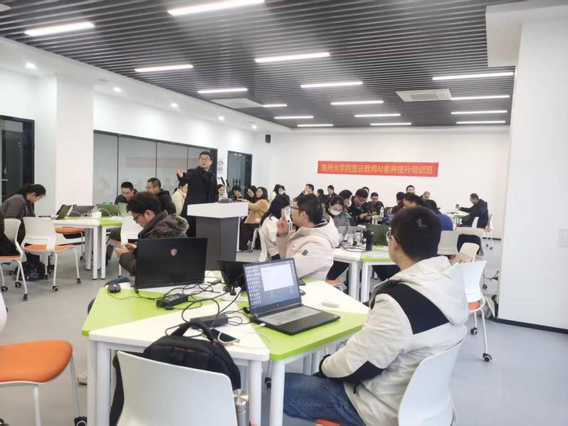 ▶ 为深入贯彻落实国家教育智慧化战略部署,全面提升教师人工智能素养和智慧化教学能力,12月24日,教务处、教师发展中心联合阿里云大数据学院、阿里云计算有限公司,共同开展“教师AI素养提升计划”专题培训。阿里云计算有限公司总部派遣多位AI领域专家来校授课,全校70余名教师参加培训。本次培训紧扣人工智能赋能教育教学与科研创新主题,围绕国产大模型应用、AIGC设计新范式、智能体(Agent)搭建与模型部署等前沿内容,系统呈现人工智能技术在高校教学、科研与管理场景中的实践路径。培训课程注重理论与实践相结合,通过真实案例讲解和操作演示,帮助教师深入理解人工智能技术逻辑,提升AI工具的实际应用能力。在“国产大模型在教学、科研中的应用概述”课程中,阿里云计算有限公司专家重点介绍了DeepSeek、通义千问等国产大模型在教学设计、科研辅助和日常管理中的应用方式,引导教师通过构建教学和科研智能体提升工作效率。在“AIGC设计新范式”模块中,课程将技术学习与价值引导相融合,通过SD WebUI、ComfyUI等工具案例,展示人工智能在教育、设计、文旅等领域的创新应用场景。在智能体搭建与模型部署实践环节,专家系