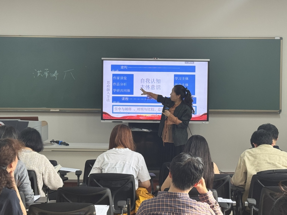 本次工作坊系校课程思政示范课程《中国现当代文学史》系列展示活动,葛金华、靳瑞芳、王丹三位主讲嘉宾分别围绕“从课程建设看课程评估”“课程思政融入文学史教学”“《现代汉语》课程思政体系建设”主题展开探讨。葛金华结合专创融合课程建设、课程评估的实践经验,以《常州文化史》为例,分享了课程思政建设架构和设计思路。他鼓励教师结合课程的专业特色,明确教学目标,以学生为中心,强调问题导向和跨学科的研究方法,通过文化史的设计与授课,奠定学生们的在地文化情感、知识和视域,真正从实际出发,发现文化研究的价值。靳瑞芳以鲁迅研究为例,分享了如何在文学史教学中“同向同行,协同育人”,围绕文化浸润、历史视野、价值引领和精神塑造四个维度,对文学文本展开细致分析。王丹结合校课程思政示范课程《现代汉语》,介绍了课程的设计思路,以及近年来持续建设、改进的过程。通过以赛促学、线上线下资源整合等方式,使学生了解中国语言文化的悠久历史、激发学生热爱祖国语言文字的情感。针对思政示范专业建设等议题,贺与诤也结合自身的课程实施分享了课程建设的思路。