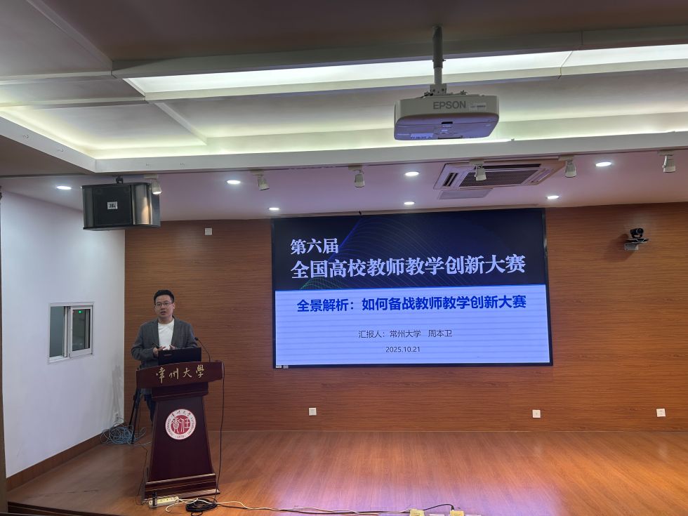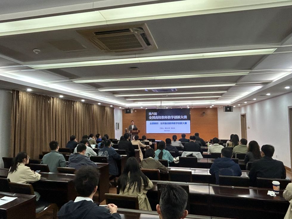 为总结推广第五届高校教师教学创新大赛(以下简称教创赛)中的优秀教学创新方法、经验与策略,助力我校教师积极备战第六届教创赛校级决赛,教务处、产教融合教育办公室、教师发展中心于10月21日邀请第五届教创赛国赛一等奖获得者周本卫老师进行经验分享。来自全校各学院60余名入围校级决赛的教师参加培训。