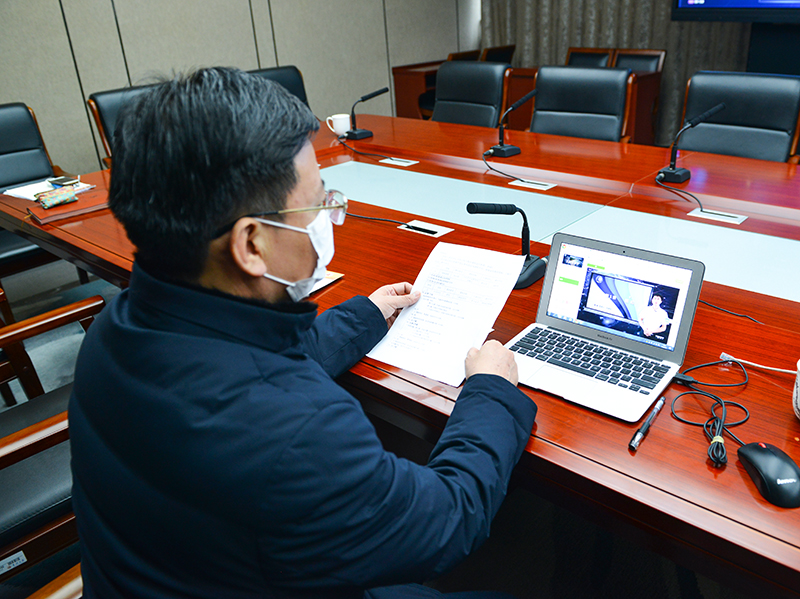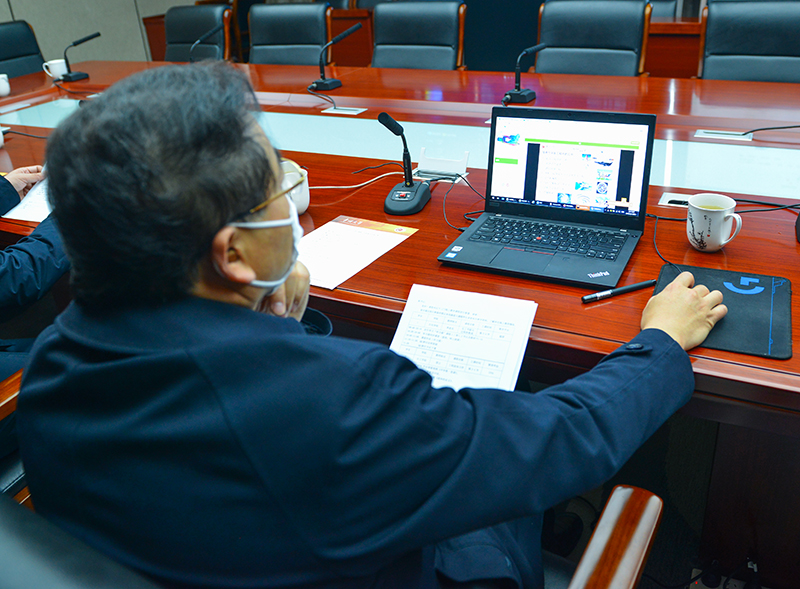 3月9日,线上教学正式开课第一天,学校在文正楼第二会议室开展线上教学检查工作,校党委书记陈群,校长蒋军成,党委副书记、副校长戴国洪、副校长徐守坤及相关职能部门负责人参加会议,会议由徐守坤主持。